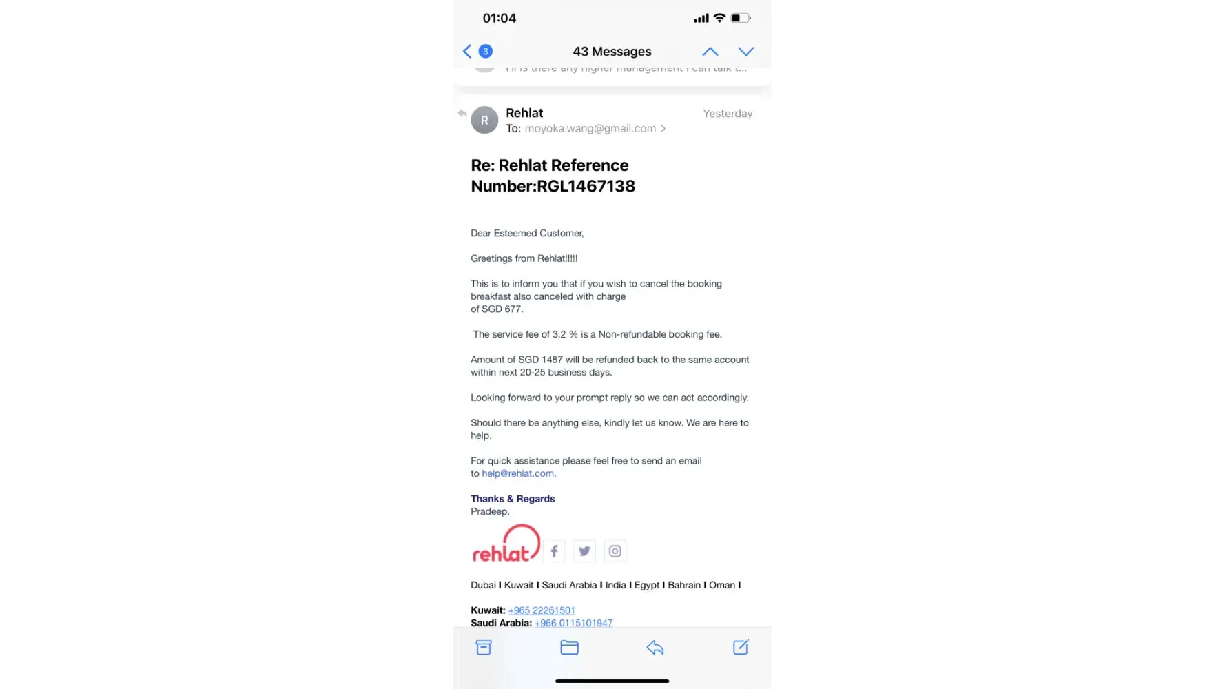 Rehlat - not refund my 1950.20 Saudi Riyal