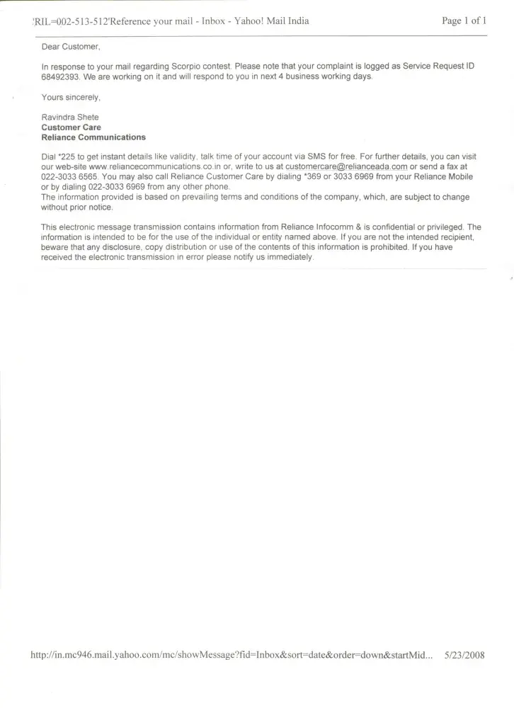 10. Just wanted to make sure about the service request was active or not, I called up Reliance customer care [protected] around 3:00 PM, but here again I was surprised to hear that even this Service request # [protected] has been closed also about an hour ago.