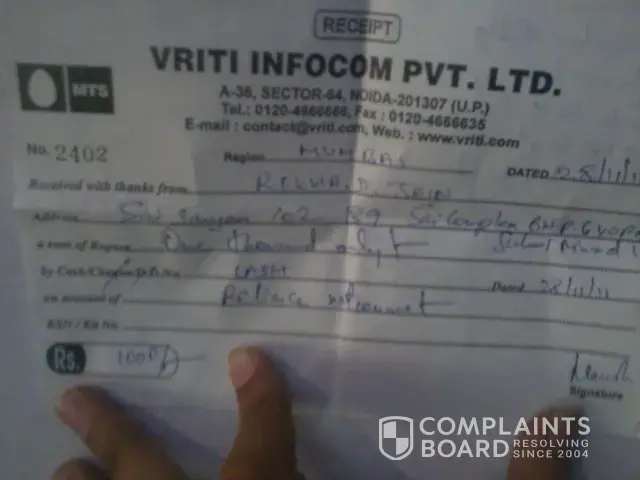 Yesterday i received a call from tis hazari that reliance has filed for not payment of bill.