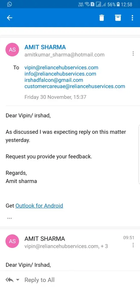 Hello everyone.. Reliance all guys are planning to run way, they have already closed the office in abu dhabi, and they are also not available in dubai. Every one start complaining in the police against them before they all leave...