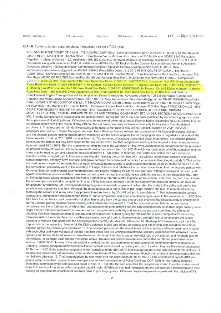 The Renault is renowned for their quality product and customer support, but this Divine Auto Tech, have failed to deliver any of the services which were agreed as terms and agreements. Mr. Ajay Kapur(Director), Mr. Prateek Kapur(Director), Mr. Murli (General Manager), Mr. Bhupende(Manageer) ets. of the Divine AutoTech, are misusing the name of the Renault Company and they are harming the reputation of the Company and they are duping innocent customers to fill their own pockets instead of providing adequate services and attention to the customers. They have indulged into various criminal offences like, cheating, breach of trust, criminal misappropriation and others. The Divine Auto Tech is also in lot of legal trouble as criminal proceedings have been initiated against its Directors. An FIR before the police has also been registered against the managers of the Divine AutoTech and investigation is in process.