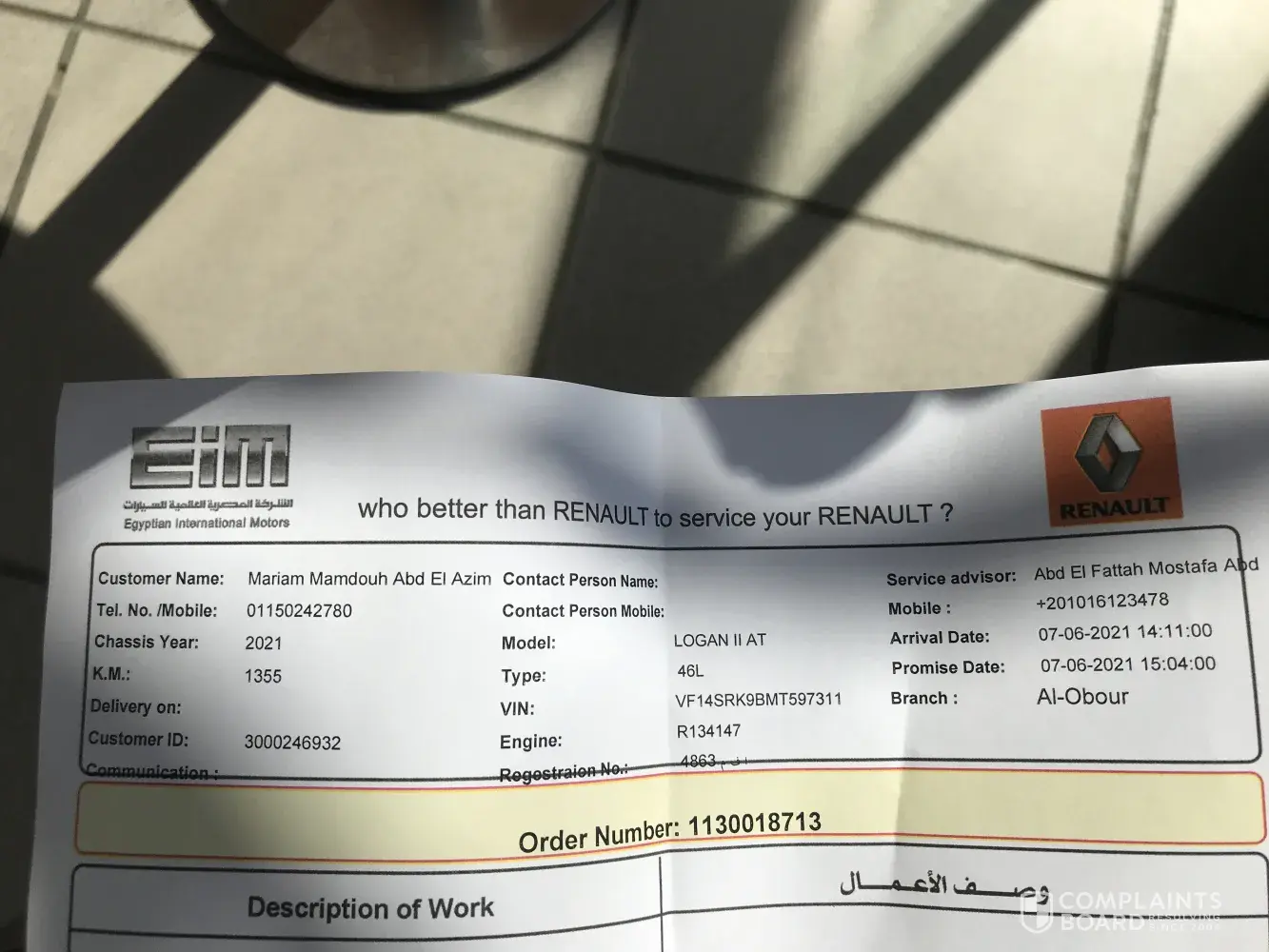 I am writing to you as I bought a new car Logan from Renault 2021 ( El Liathy exhibition ) egypt, Cairo, I bought the car by the end of March 2021