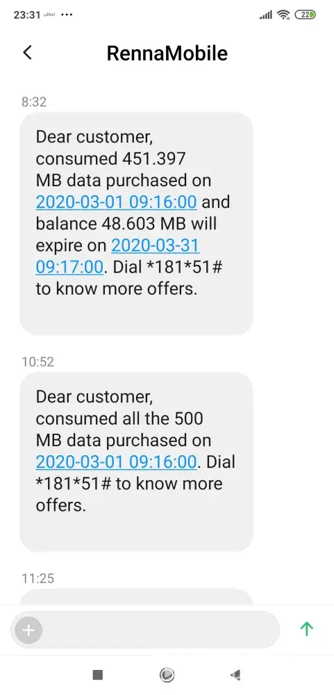 I took a net package of 1.25GB on 01 march 2020 at 9:17 AM back to back I got a congratulation sms of getting 500MB free... after 9 days I got message that I consumed 404.543B out of 500 MB purchased.. Initially I thouhgt some error message as I purchase 1.25GB.. then after 1 day it said all MB consumed and data is locked...