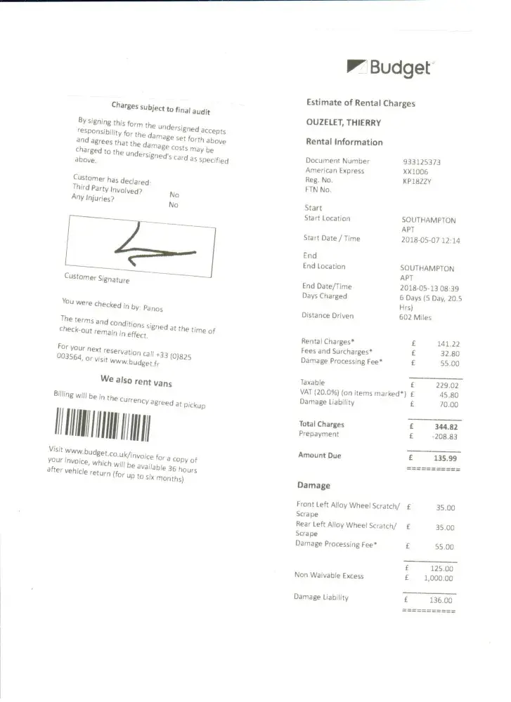 So the extra 270 euro I have to pay. Pay attention: a valid voucher from rentalcars might not be valid!