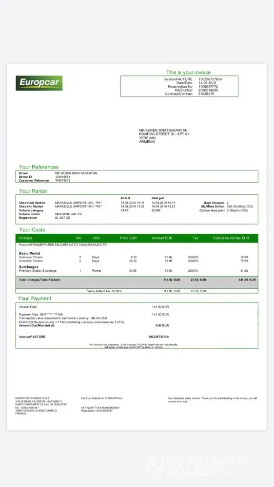 When we arrived at the counter of Europcar (being the supplier of the car)