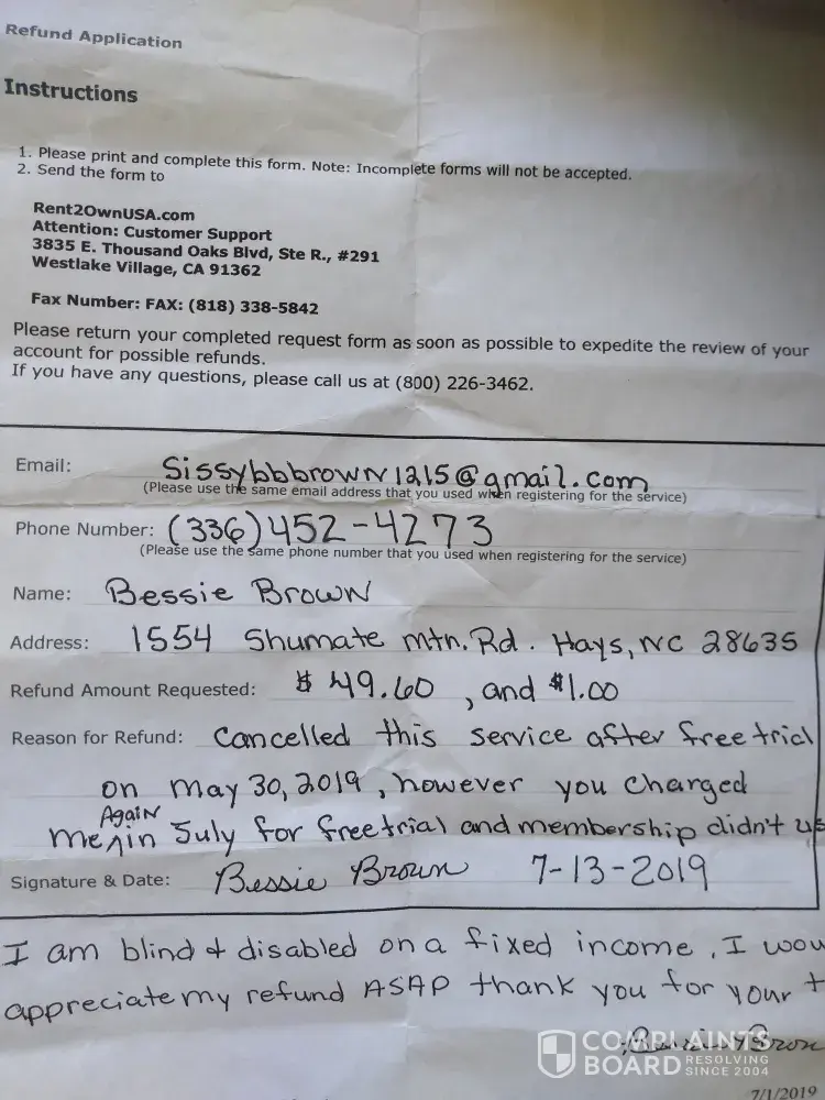 RentToOwn.org Review: Frustrating and Disappointing Experience with Poor Customer Service and Hidden Fees