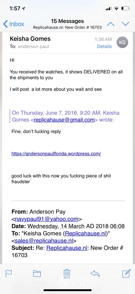 I ordered replica Rolex watch from the website www.replicahause.nl. I bought this watch for my friend and I placed this order in advance of two weeks, before my friend’s birthday. I was shocked, ‘coz these scammers haven’t delivered order and provided completely fake excuses. Please leave comments about this company, because people should be aware when they buy from such dishonest seller.