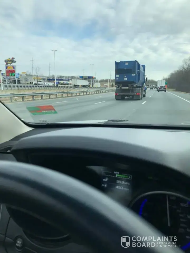 I was behind one of your trucks in Delaware on I95 yesterday morning. This truck was spewing rubbish all over the highway. I took pictures of the truck hoping that somehow I could identify it. However it is not easily recognizable since I could not find a license plate. So I tried to take a few pictures so that you could identify it. Also, you should be required to send someone to pick it up.