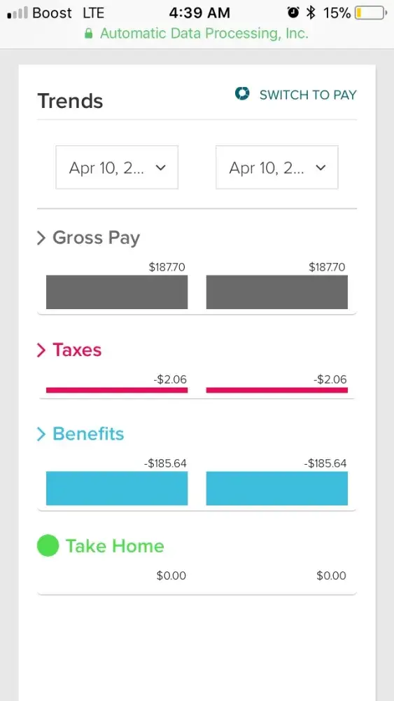 Now I'm a mother of five so you can imagine every penny counts. This is a mistake that can be fix but it's unacceptable to keep happen repeatedly. HR said it will be fixed lets move forward but eight months ago The same thing happens and not got fixed but I never got paid my money back to me then and now we're here again so again HR says it will be fixed but I may not get my money back. Really because of mistake of not reporting the Accurate information from there doings? My check was for $ 187.70 benefits took $185.64 taxes taken were $2.06 And I took home 0.00 and because I didn't work enough hrs I owe in money! What would you in this situation ? See my attachment of my check stub. A single mother of five ! Don't just keep fixing it ! Make sure it does not keep happening ! And Pay me my money back! Maybe then HR will report the information currently!