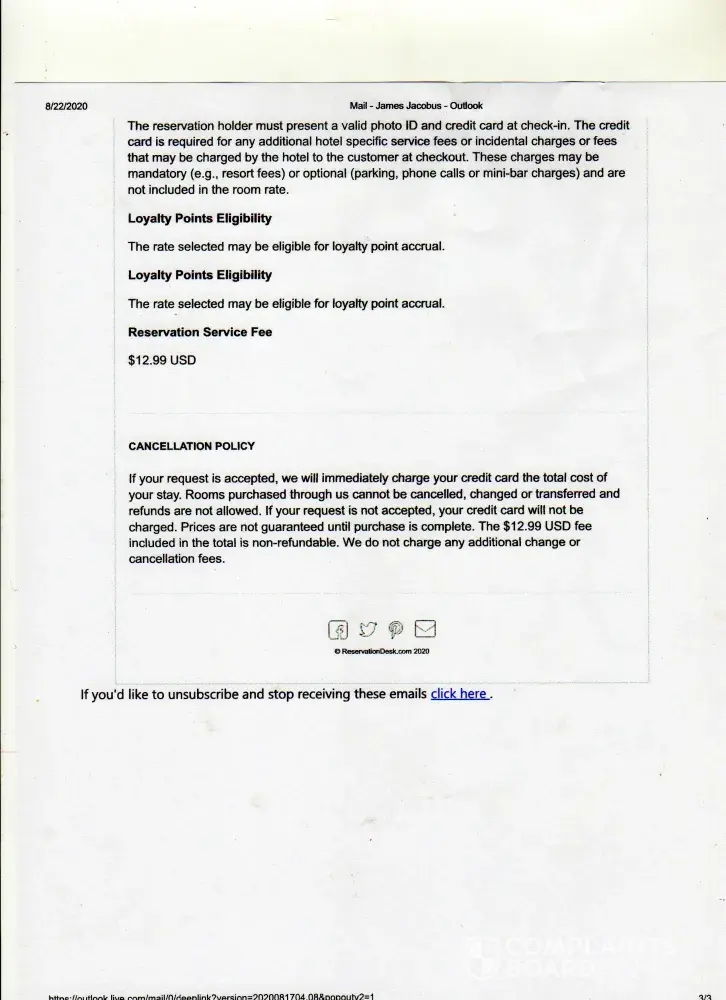 Read full complaintHotel reservation