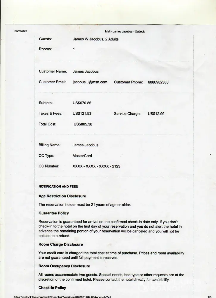 I booked with Reservation Desk online and I should have paid more attention and read the reviews! I will never book with them again! When we got back from our trip, we had been charged by Reservation Desk and the hotel both and the charges from the hotel were cheaper! I called both places and of course the hotel is the one refunding our money, so it cost us all the way around. When I ask Reservation why that was, I got the runaround and no answer. I should have paid more attention!