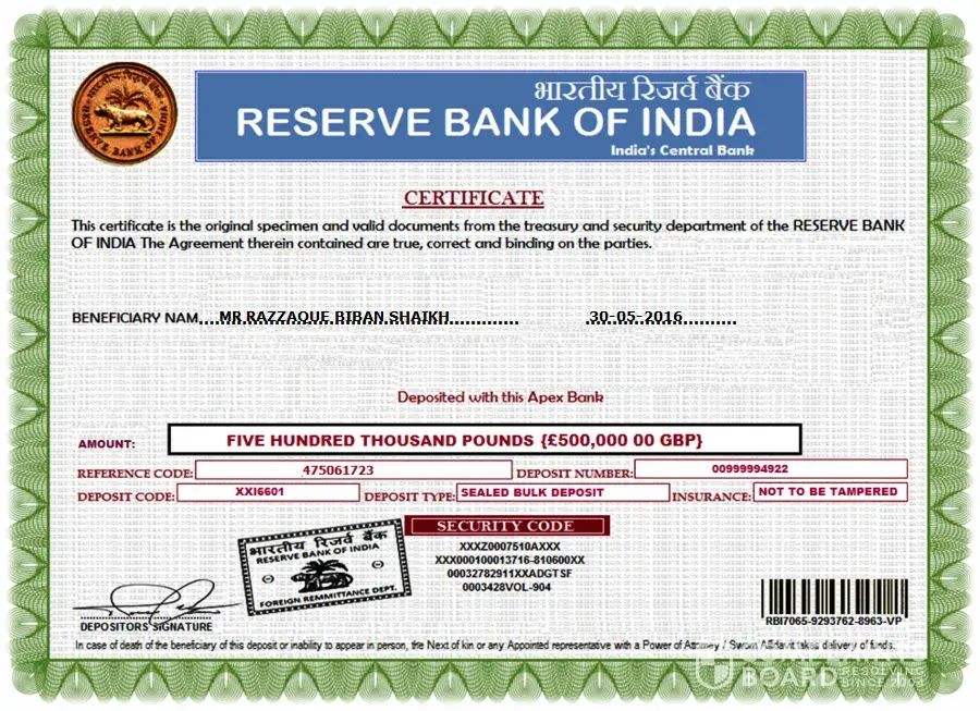 We Acknowledge the receipt of your transfer requirement that was sent to this department, regarding the Transfer of your fund the total sum of Five Hundred Thousand Great British Pounds(500GBP) that was deposited here at the reserve bank of India new Delhi branch to be transferred to your given personal Account, we also wish to inform you that the Foreign Remittance Department is now processing your Online transfer to your account. In order to complete your process you need to registered your online account with our bank. On completion of your account registration, we will issued your account number and account access (logins codes) details to enable you access and transfer your funds personally via the bank online transfer system to your designated bank Account.