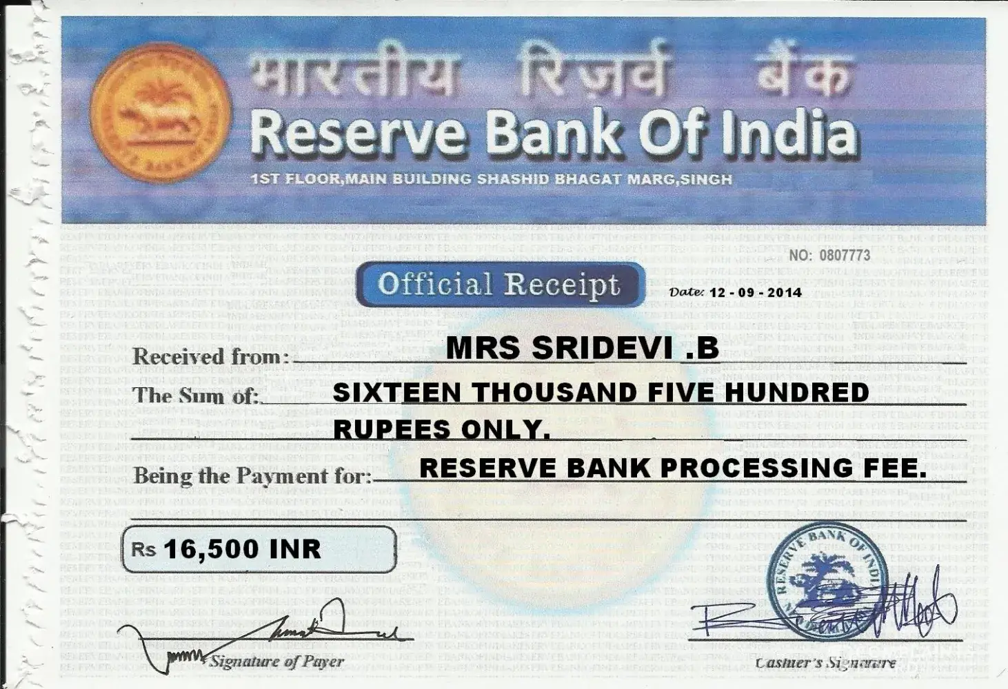 Payment for the tax fee (rs 16, 500/-) should be made via bank account (cash deposit) to our receiving accounts officer, our policy requires all payments within a certain limit it should be remitted via bank account to our receiving account officer in charge of local payment for immediate pick-up to facilitate easy proceedings of your funds transfer.