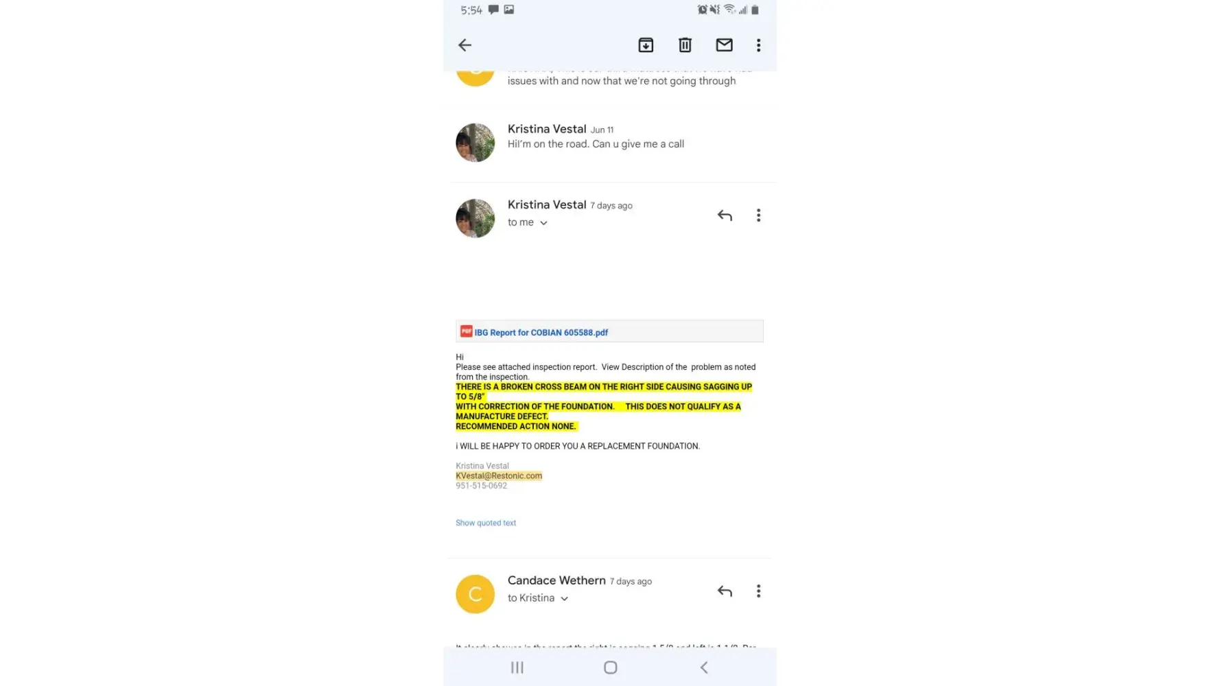 See emails below: