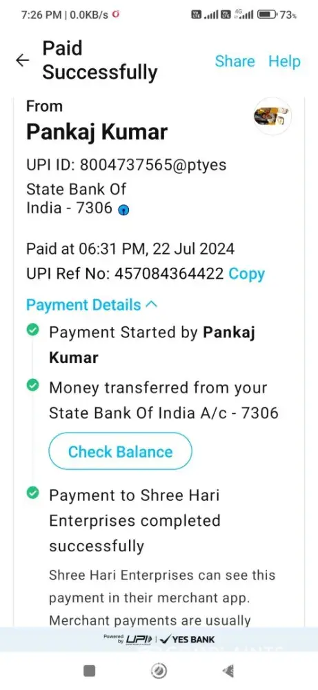 Read full complaintShree Hari Interprises - UPI ID boim [protected]@boi