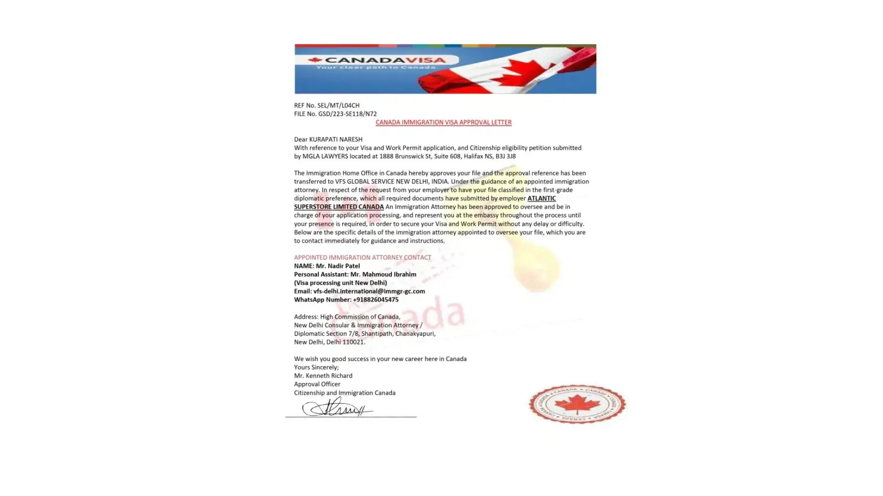Atlantic Superstore Canada Headquarters:3711 Joseph Howe Drive Halifax, Nova Scotia B3L 4H8 Canada TEL: +[protected] WhatsApp:+[protected] Dear KURAPATI NARESH This is an affirmation that your experience and qualifications were found successful for the requirements of Atlantic Superstore Canada, Also as an Employee of Atlantic Superstore Canada...