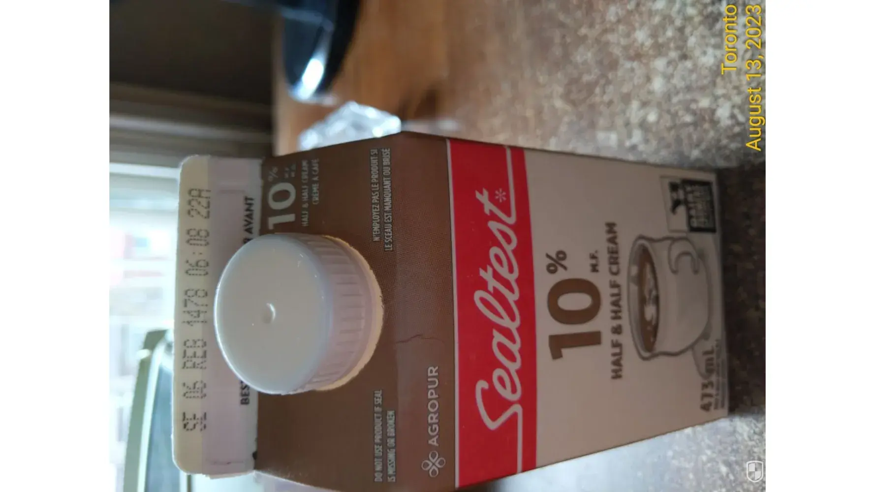 Conversation with Yammy Market Sol Lesov To: [protected]@yummymarket.com Sun, Aug 13 at 12:19 p.m. Hi there, I bought in your NORTH YORK location about a week ago a pack of "Sealtest 10% Half & Half cream 473 ml". Next day after opening it got sour and I had to throw it away. When I looked at "Best before" printing, it displays "SE 06 REB 1478 06:08 22A". What...