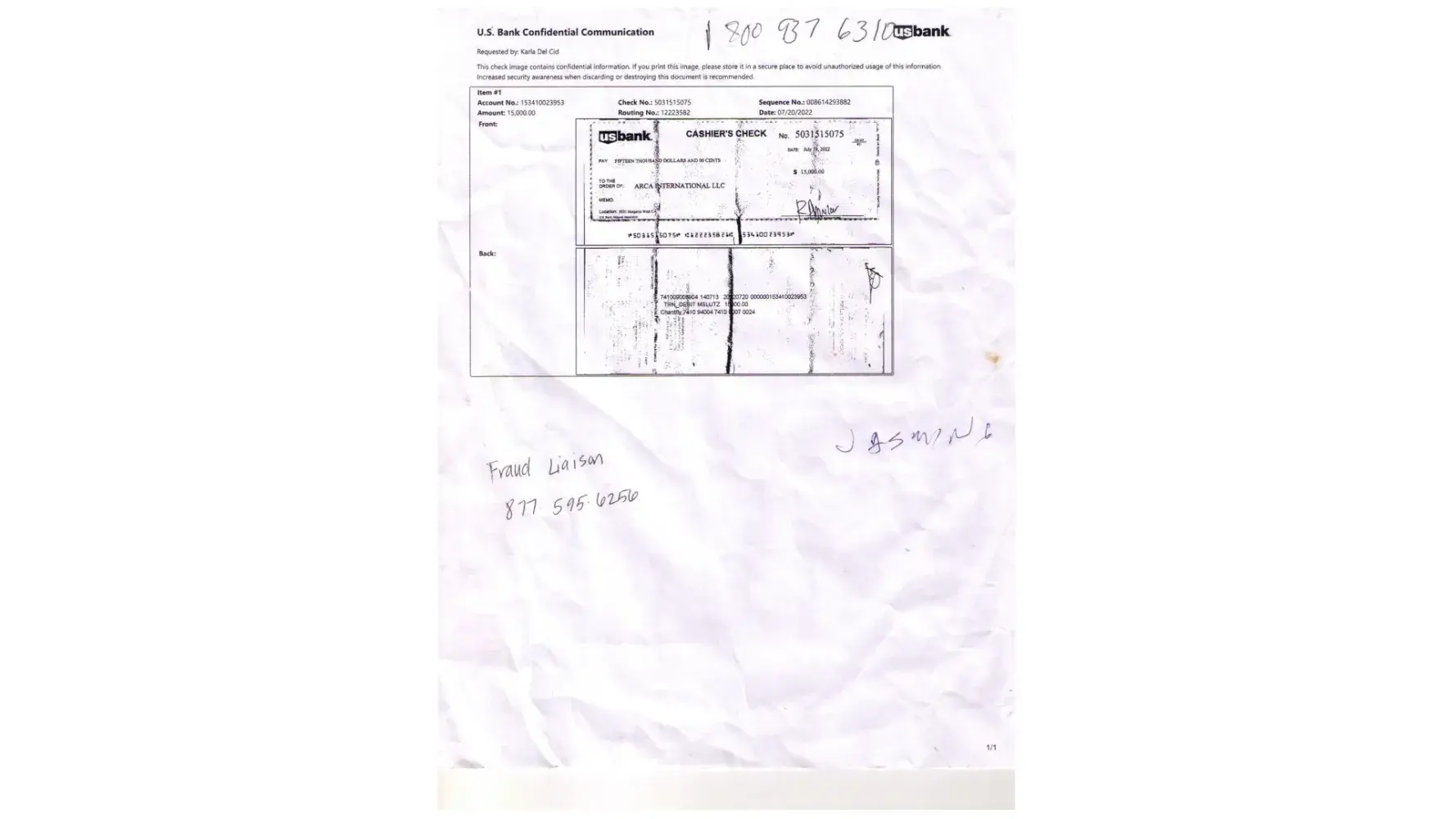 ARCA International LLC - Cashiers check made out to company was cashed and funds not returned