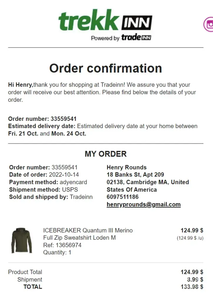 Read full complaintTradeinn / Trekkinn - Reimbursement of purchase cost, given no goods were received.