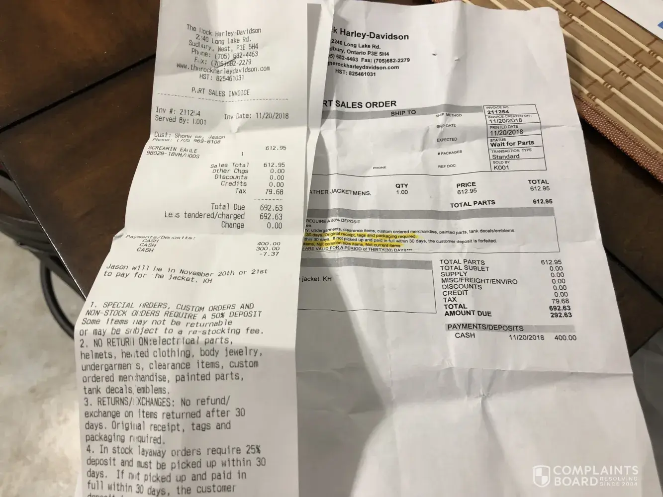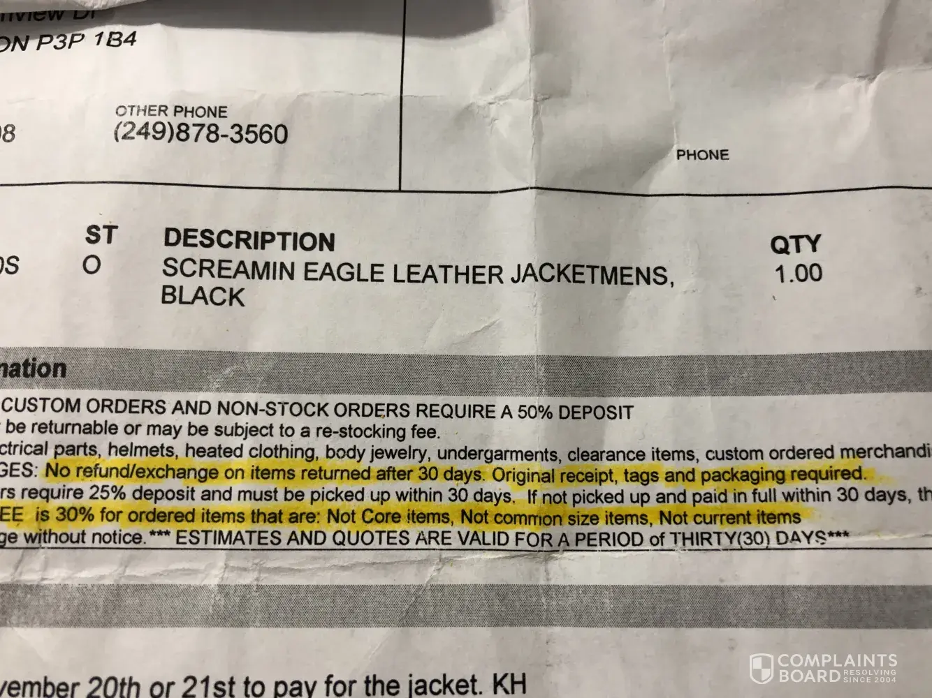 My boyfriend bought a jacket through our Harley dealer, he noticed a flaw and tried to return it, it was a week after buying it, they wouldn't return it as they said it was a small size and would be hard to resell, but the receipt specifically has a rule about a 30% return fee I was fine with but they still wouldn't let me return it. They sell that same...
