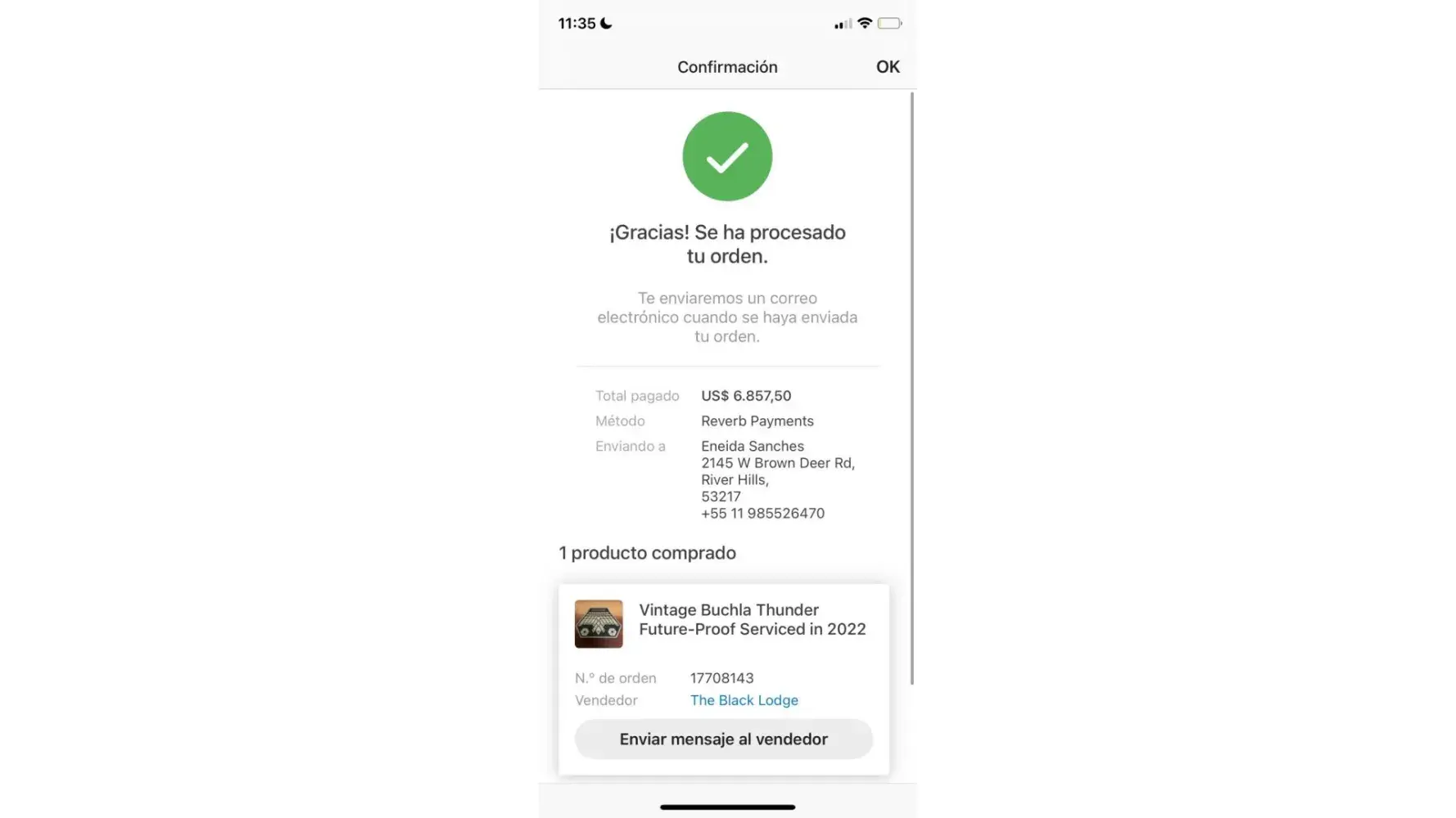 I purchased a musical instrument from the online instrument retailer, Reverb