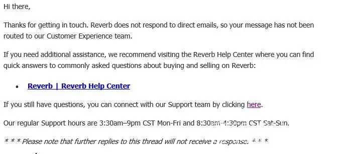 Bad reverb.com tech support