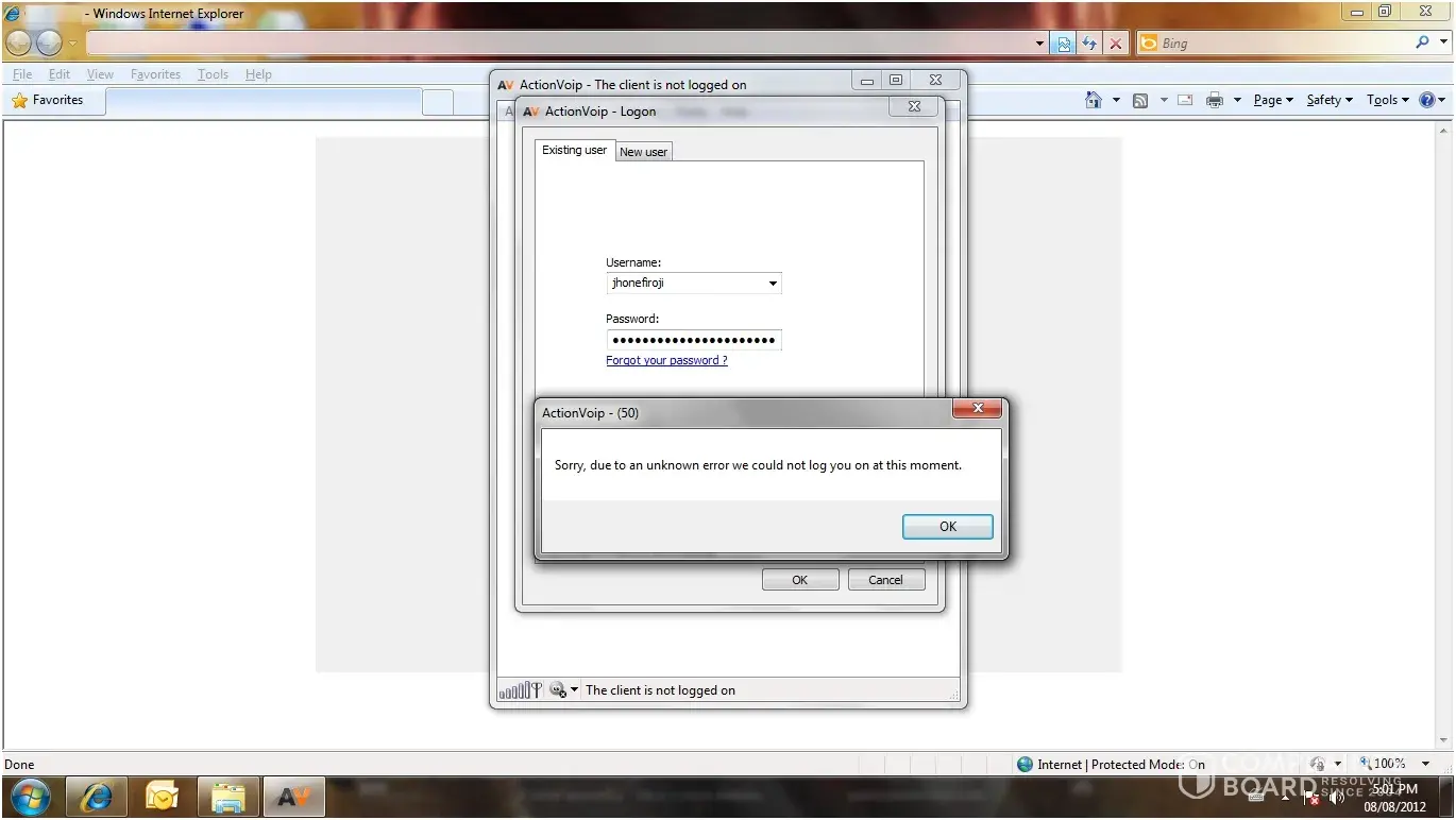 I have a problem with actionvoip id : jhonefiroji, i cant able to log on in software and website both . i don't no also what is problem with my id . I sent every day massage to actionvoip customer service, but i got only auto reply from actionvoip website. my last logon date on 05/08/2012 that day is working fine. from 06/08/2012 i cant able to log on my id .