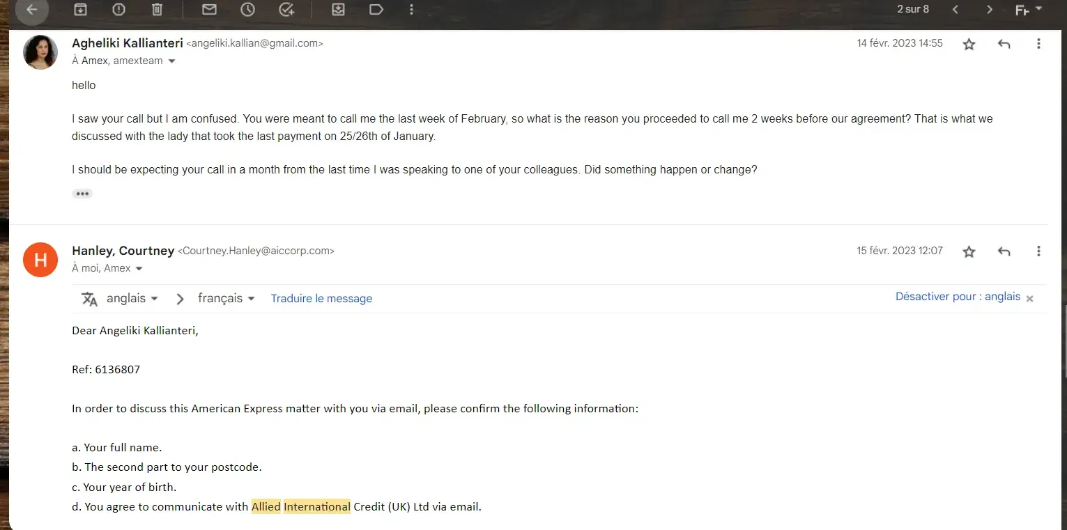 I had 2 American Express cards that have been closed for years. Allied was taking payments every month. End of January 2023 they called me to settle. They agreed on the phone to close both accounts. They took the payment for one of the accounts and agreed to call me in the end of February to take the other amount. This did not happen. Instead I kept receing emails and phonecalls shortly after the 1st payment was made.