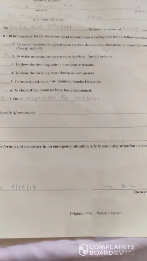 It's official people my apt in building 1343 has recurring bed bugs notified both Bill @Yale Management and slumlord Jonathan dromy/505 investment Co llc, almost a week and they could not get an appointment from Dewey Pest to come out and do a treatment. Bed bugs are disgusting, GROSS! Bed bugs Slumlord! I even told them to go with another Pest Control Company but NO. They don't care if tenants get bitten or the disabled tenants & pets get sicker! 1 page is from Bill Mgr notice to enter, the other page is from Dewey inspector but no appointment date!