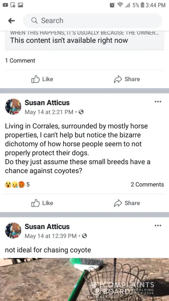 Here's the post I forgot to upload of Susan blasting her neighbors on social media. The funny thing is she rents. This is just another example to show people shes in everyone's business. Records show shes only been living here since the beginning of the new year 2019. Not even 6 months after renting this place she's telling neighbors how to live their life. This is funny because knowing she rents she continues to own bull terriers. If I would of known what I know now scott wouldn't own one of my dogs.