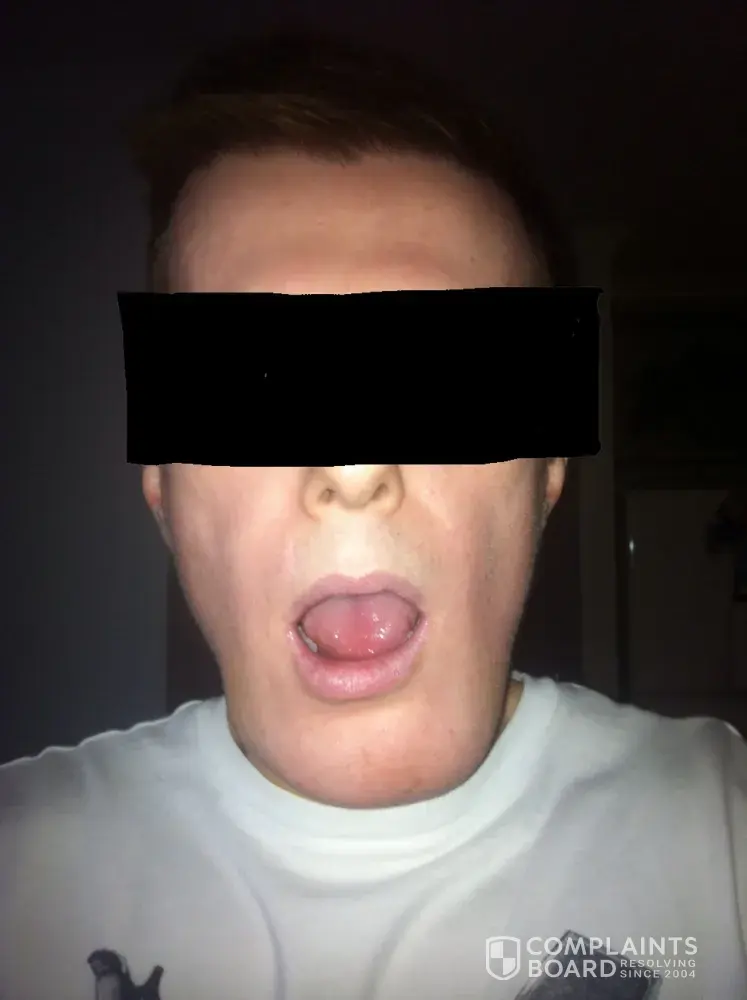 Dr Ross affixed a chin implant entirely on top of my chin rather than around it (according to the hospital report written by the independent removing surgeon), and it was attached to my face 1.5cm off centre (again, according to the hospital report). This resulted in: