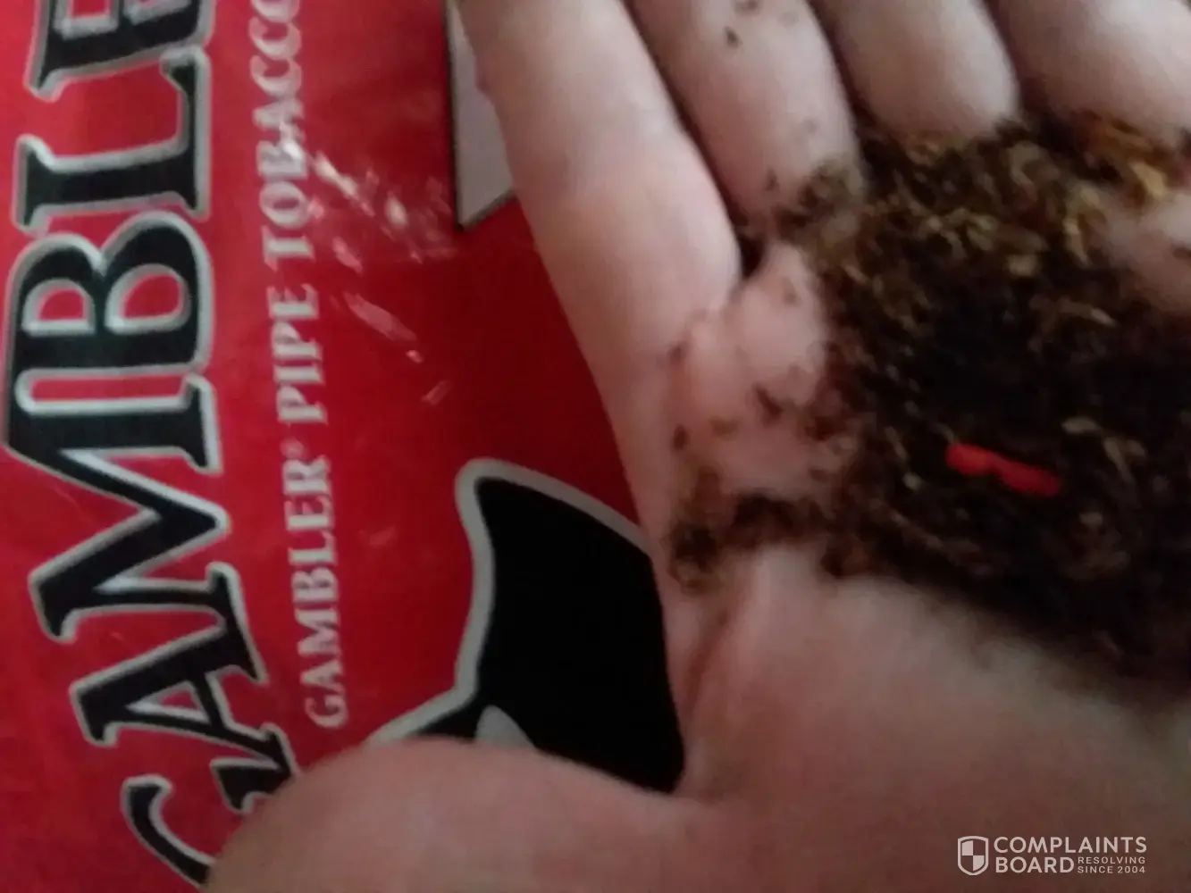 I have been buying gambler pipe tobacco for the last 2 years.. Have always been happy with it.. Upon my latest purchase of the product I found two bugs of what I think are in the catapiller or worm family in my bag.. Needless to say I am taken back by this discovery.. What if these worms would of went unnoticed and placed into one of my cigarettes?. I am looking for a reimbursement for this bag and if I get ignored then I will never buy a product from republic tobacco and will also tell anyone who will listen to not buy them..