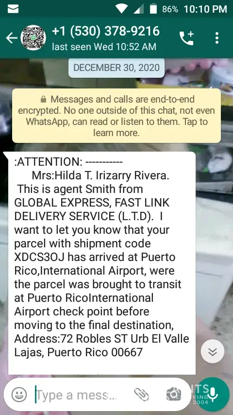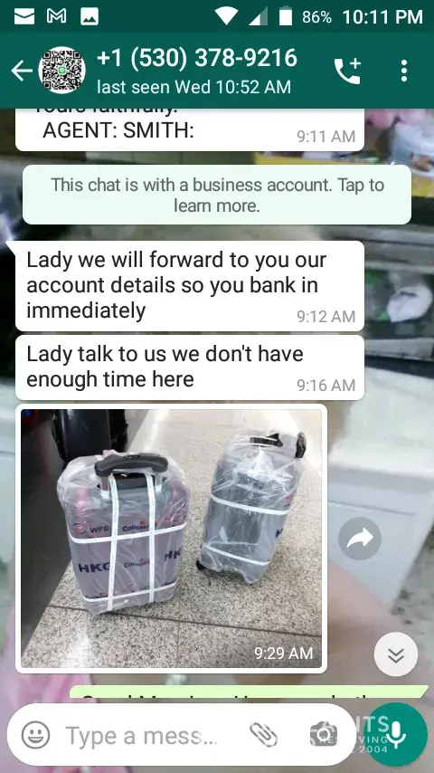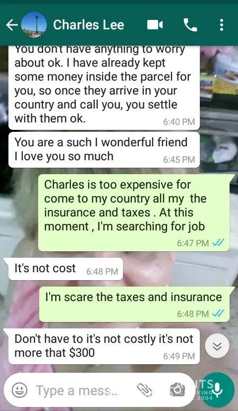 Check it out. I just found a new friend on the internet a few days ago. He talked a lot and said he wants to give me something and he also sent a lot of pictures and his agent came to my country and called me and said I have to pay some amount to clear the customs and as soon as I get my parcel when I feel this fraud