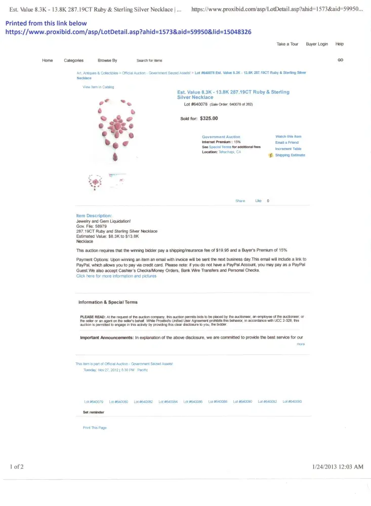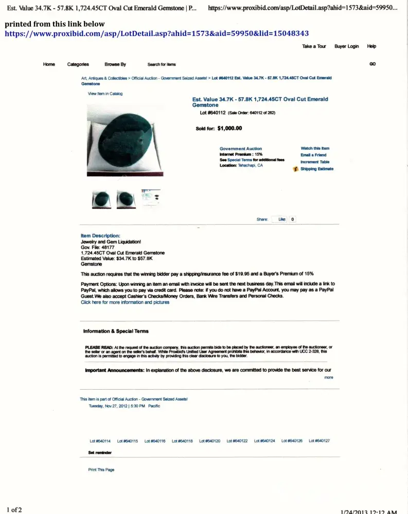 governmentauction.com As to the claims reported with Certified product. These items are fraudulent and are junk. If GLA is certified they would know that these items are clearly not of gem quality and are worthless. I took these to a Gemologist to have appraised they basically told me this is fraudulent certificate even for insurance purposes, as if for...