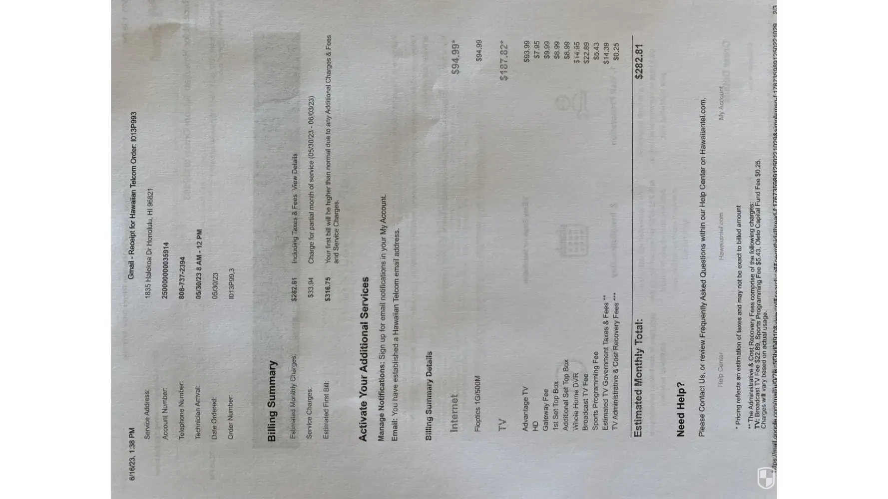 Hawaiian Telcom Telcom sent a TV cable box to me while I was Incarcerated during the time this was done.