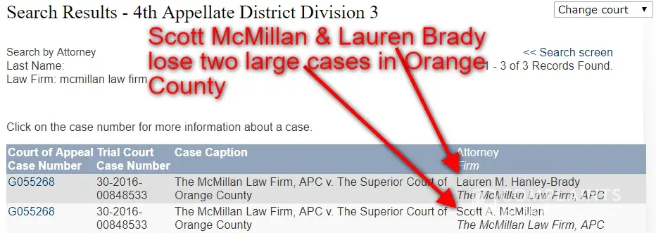 While being an associate of Scott McMillan, it was discovered Scott McMillan lost yet another major case.