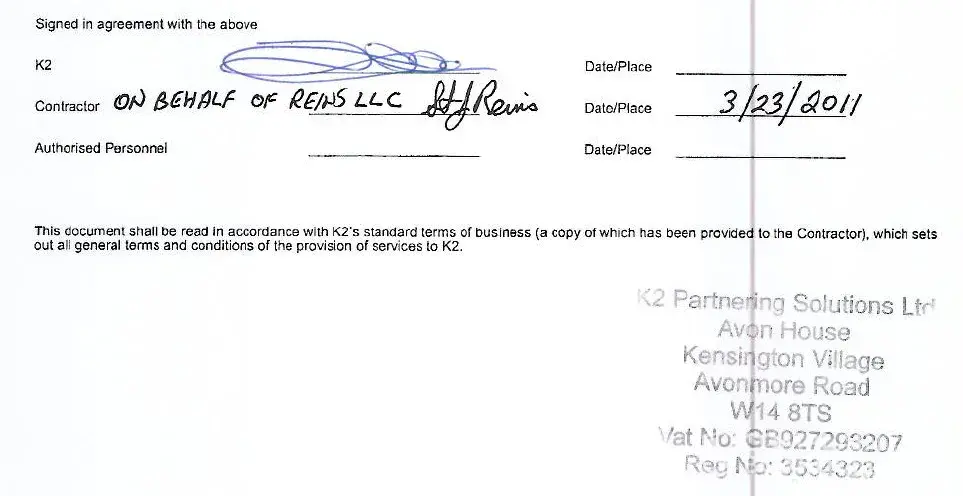 Yesterday, after almost a year K2 gave me the name of the individual who signed my contract with overlapping zeros.
