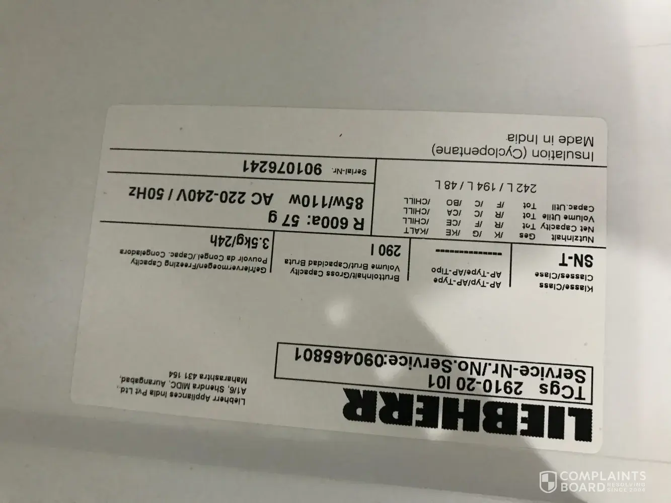 Liebherr reviews and complaints