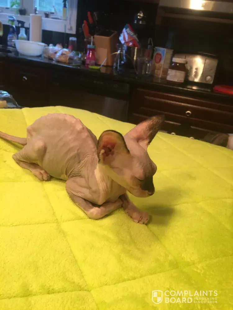 A few weeks later, I received a facebook message from another member who also had the same issue happen with her cat that she received from April. It turns out that one of her cats was my kitten's sister. She ended up ok, but the other cat that she received from them started getting the same symptoms that Mira did and the cat ended up dying the exact same way. April then saying that the cat was neglected. This is a horrible scam this breeder is running, the customer service is poor and they are stealing peoples money by refusing to honor their contracts and selling sick cats. Do not believe anything that was written in April's posts.