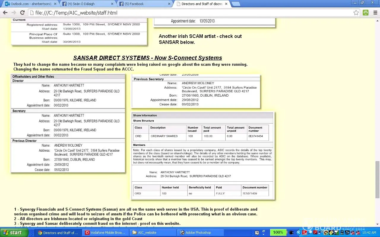The Queensland fraud Squad ignored hundreds of complaints about these people for at least a decade and the head of the Qld Fraud Squad Brian hay still tries to justify his gross failure to act against organized crime.