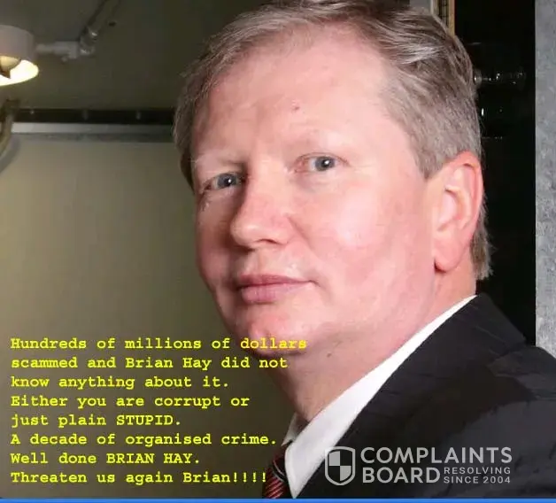 The largest scams in Australian histroy right under Brian hay's nose and he is just allowed to walk away from it - NOT ON.