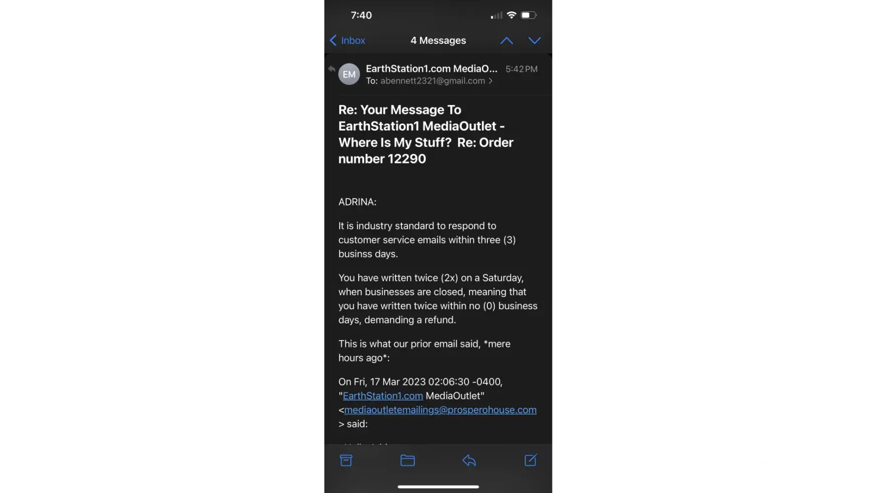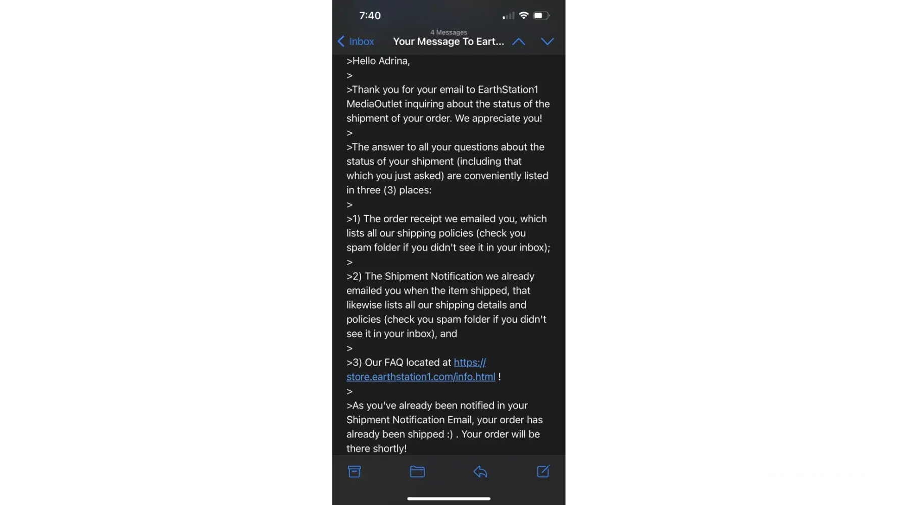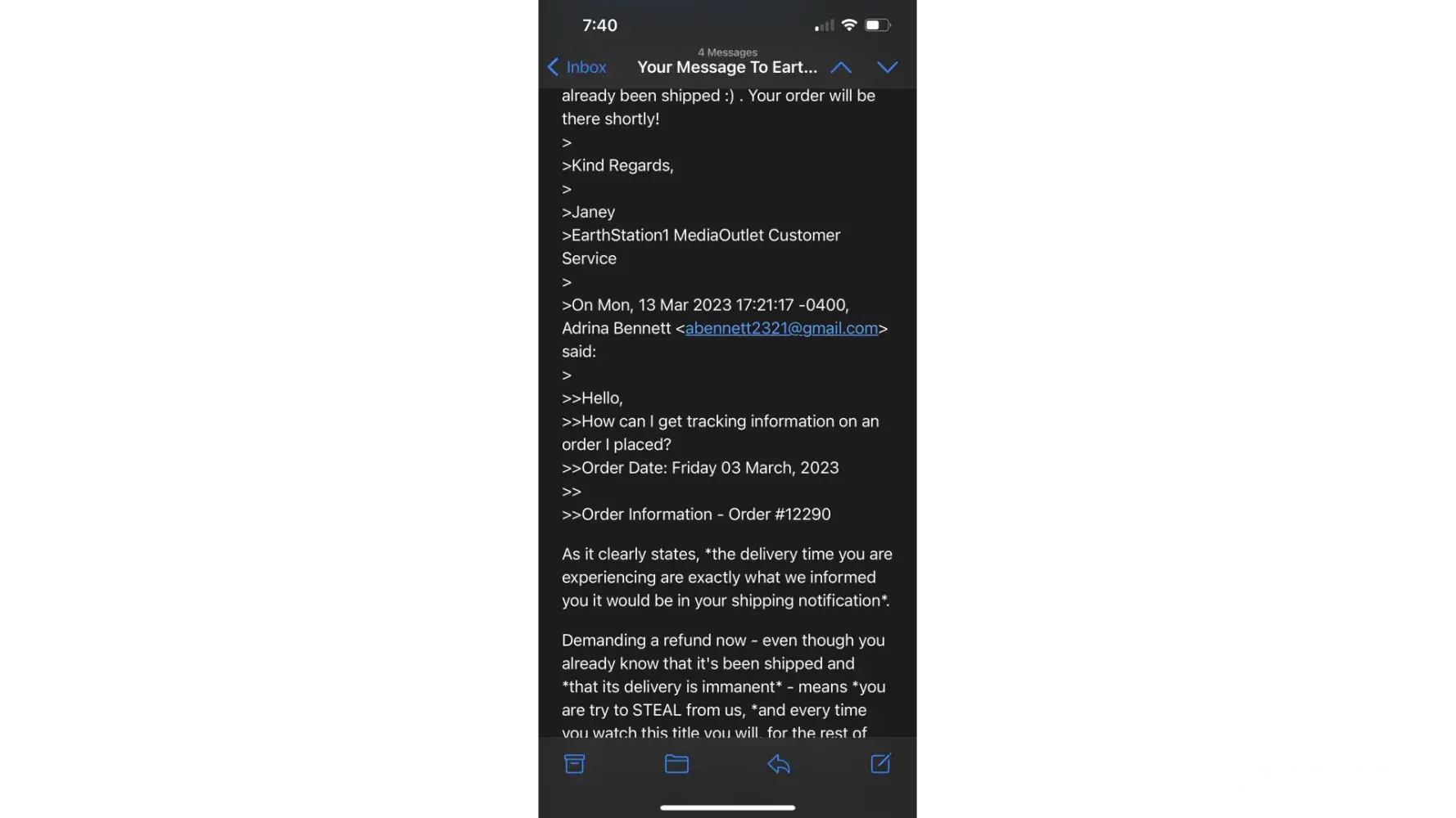 I ordered 2 movies and have yet to receive them my order 11842. I got a nasty email from EarthStation1 MediaOutlet Customer Service • service@mediaoutlet.com this email address saying they shipped it and it's the mails fault. I reached out again and it says can't be delivered. BEWARE