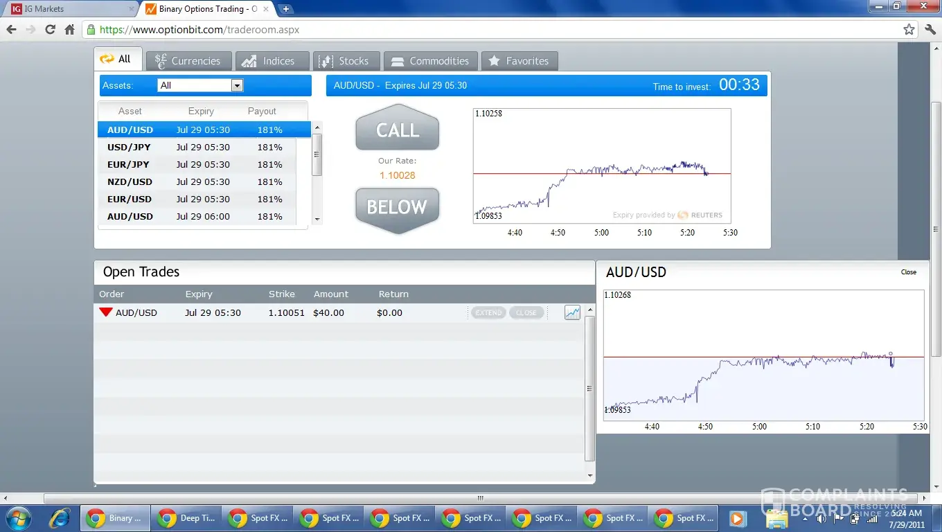 Please check how a winning position was made to lose( sharp spikes generated) ..closing price at 5:30 was 1.0996 and optionbit system manipulated to show this as 1.1006..thats a 10 Pips difference... I have sent the mails to OptionBit Account Manager.. Awaiting his response... Shall keep the bigger currency trading community updated with their action..