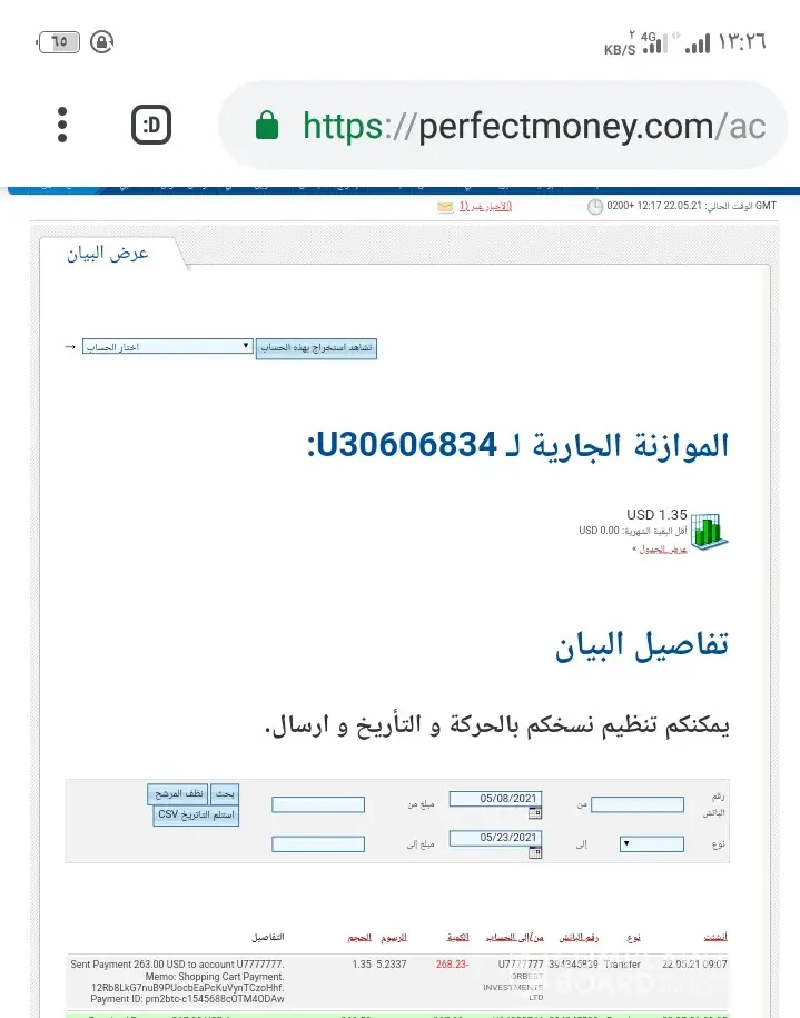 My perfectmoney Account number: U30606834, Account name: Abdelbaki Maannser, was hacked today and my money stolen by hacker using this verified id: PM:U7777777 Orbest Investments Ltd)