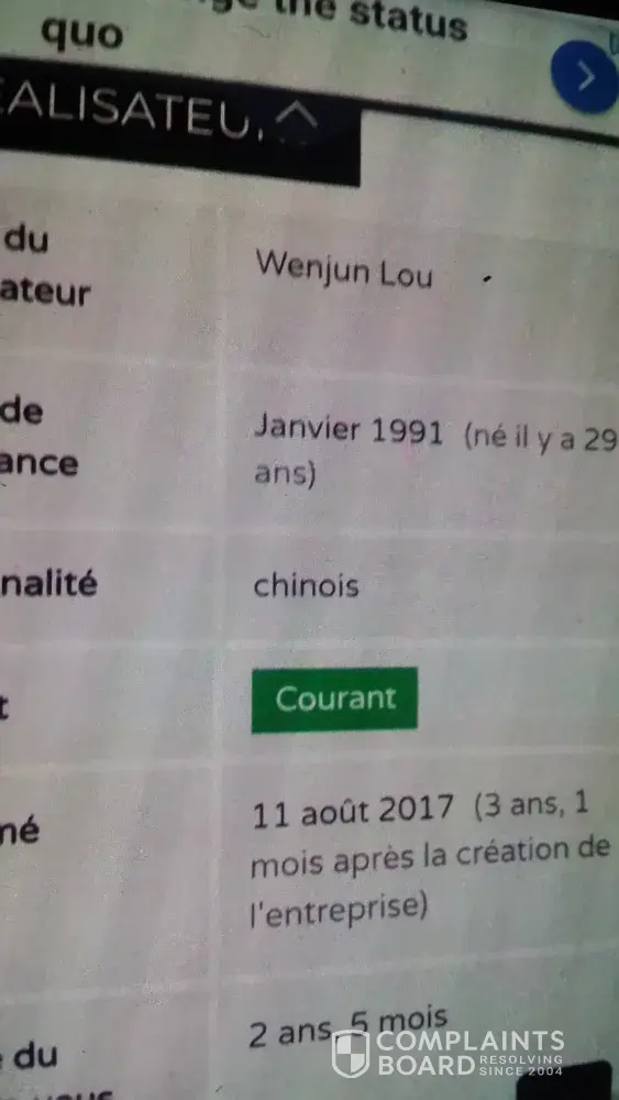 Adresse de WENJUN LOU en photo l'autre adresse ci dessus est à Qin
