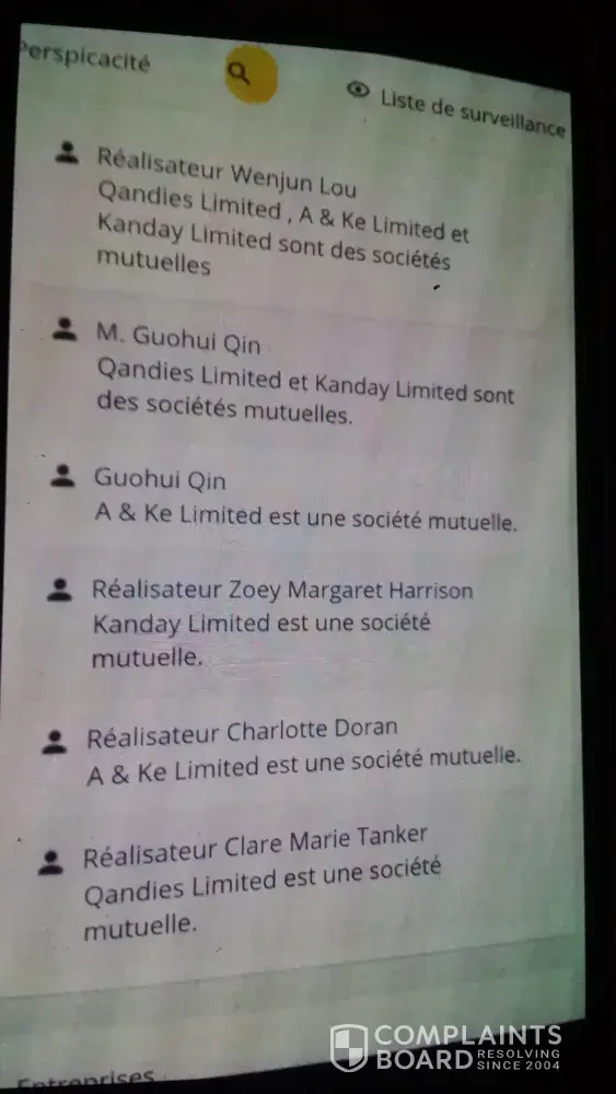 se cache qandies limited se partageant en chine et à londres appartenant à wenjun lou adresse 2, f western commercial building n°31 des voeux hongkong 999077, clare marie tanker adresse suite: 617, crown house north circular road londres nw10 7pn et guohui qin adresse 2 f western commercial building n° 31 des voeux road west, western district hongkong 999077