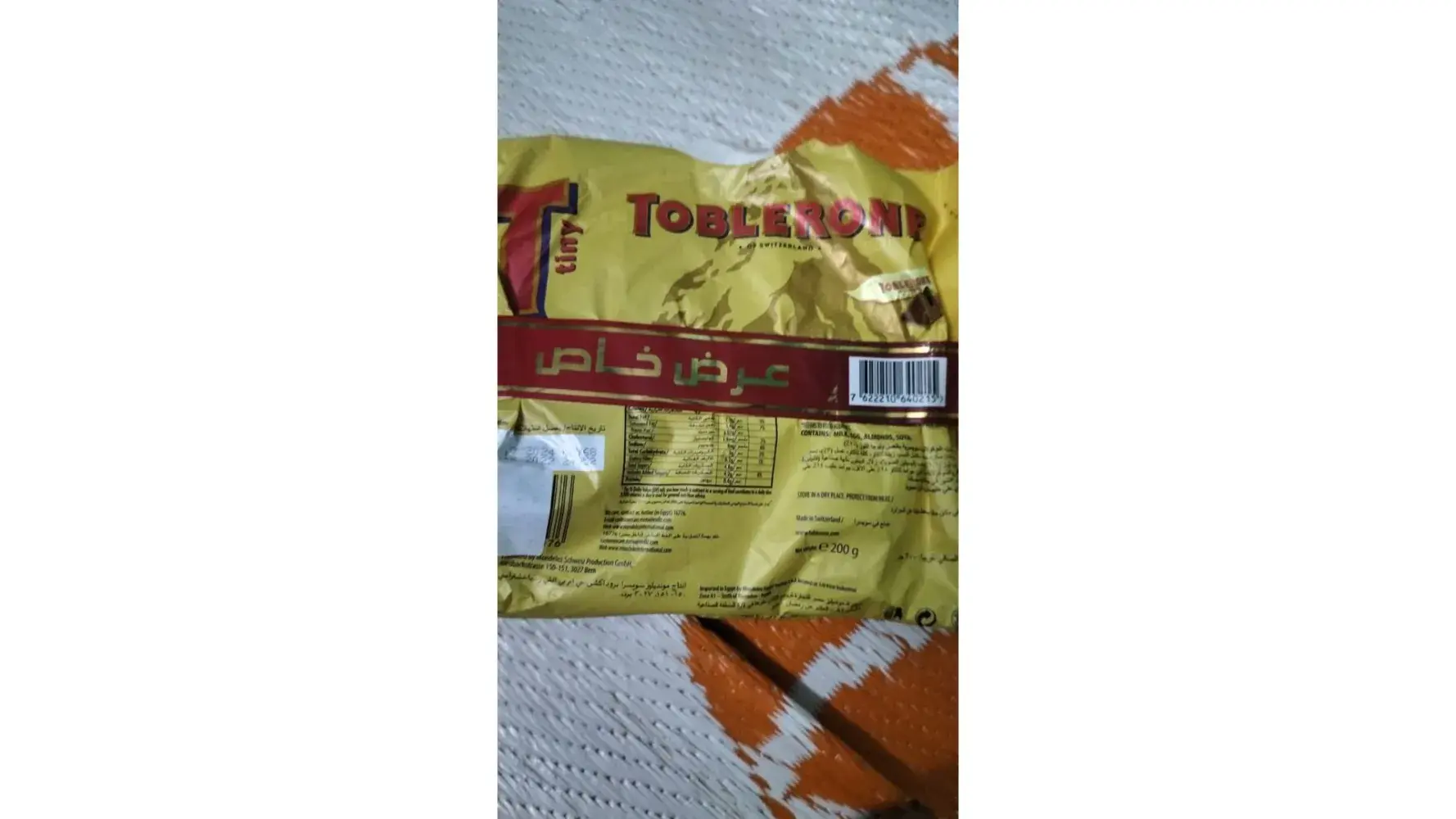 I purchased a pack of Toblerone of Switzerland Mini ca. 32*Milk snack size pcs from a duty free shop at Ataturk International Airport, Istanbul, Turkey on 4 June 2015. The pack has the following details :-