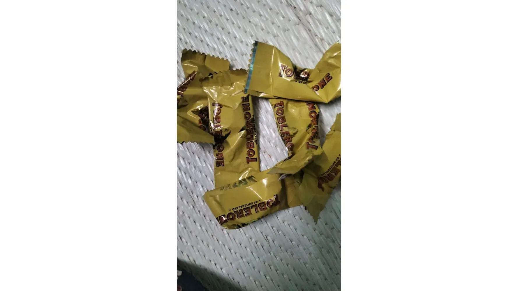 Empty sashes found in Toblerone tiny pouch