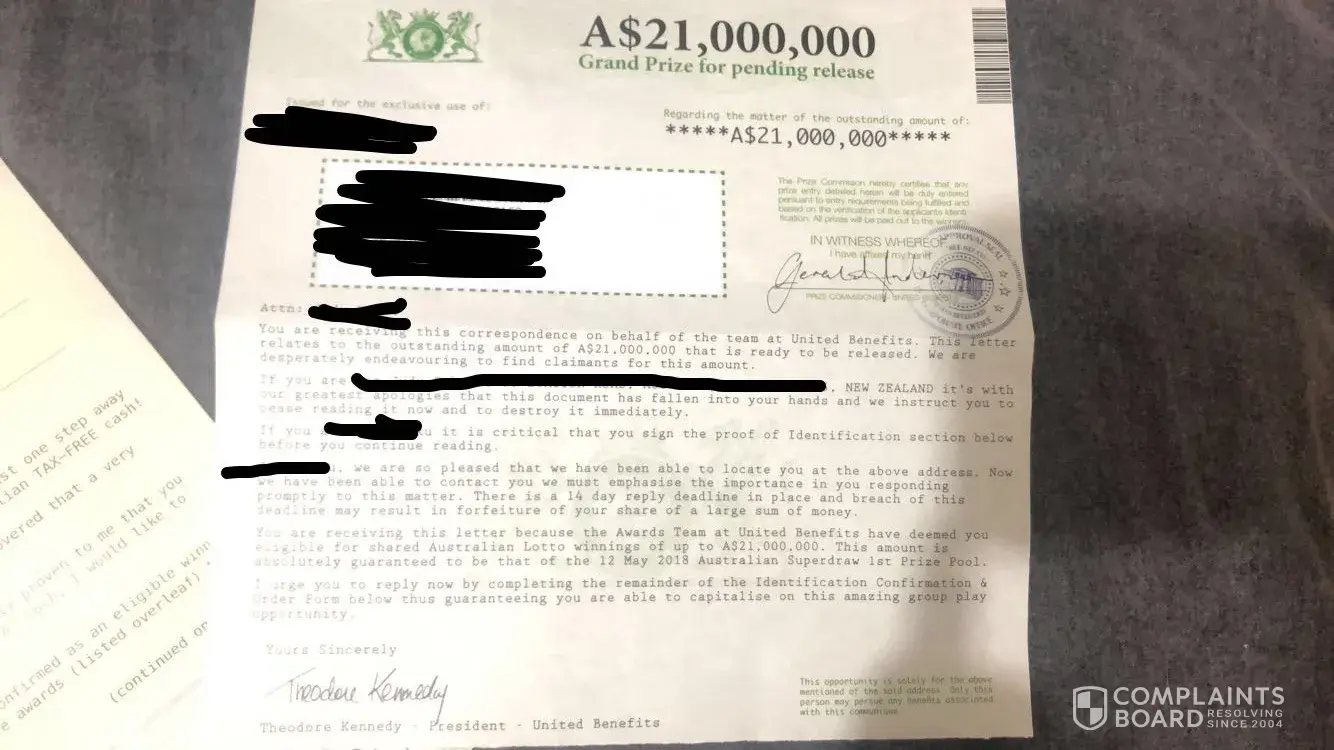 United Benefits lottery scam