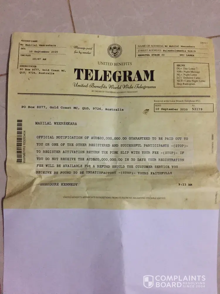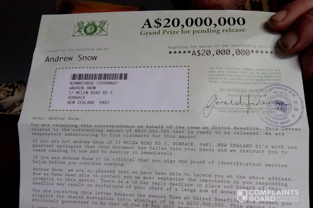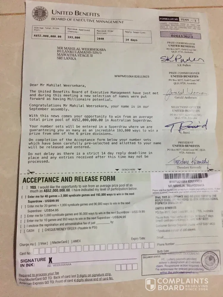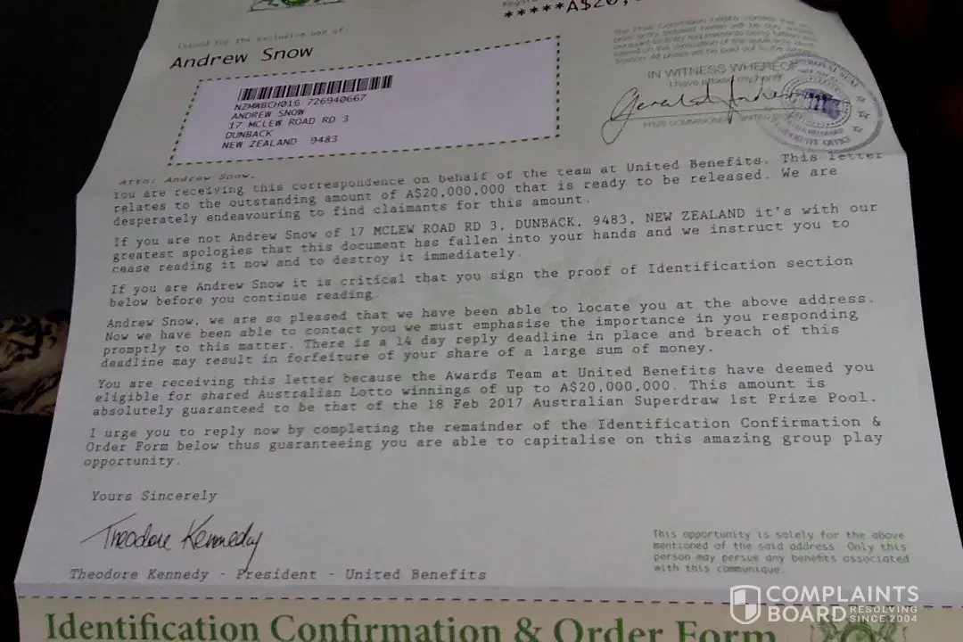 United Benefits Australia lottery scam